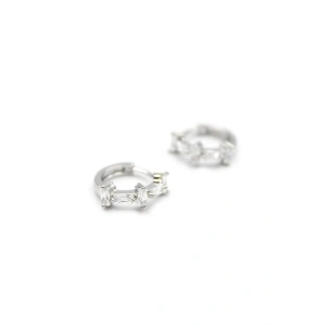 Taşlı Halka Küpe - Gümüş