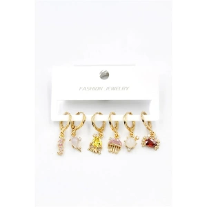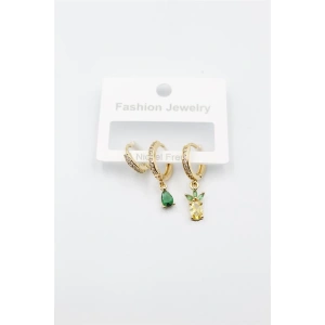Taşlı Çoklu Küpe - Altın