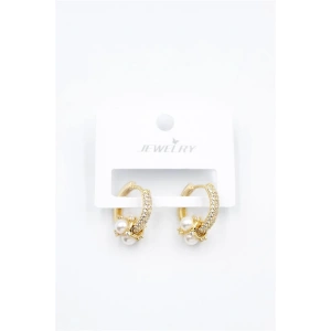 İncili Taşlı Halka Küpe - Altın
