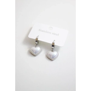 İncili Çelik Kalp Küpe - Gümüş