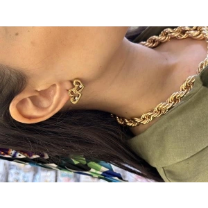 Büyük Baget Taşlı Küpe - Altın