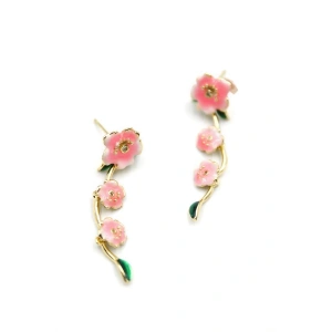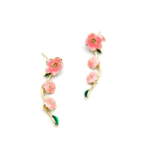 Mineli Çiçek Küpe - Pembe