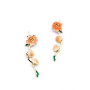 Mineli Çiçek Küpe - Turuncu