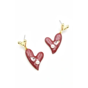 Mineli Kalp Küpe - Bordo