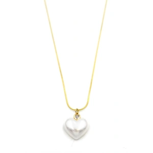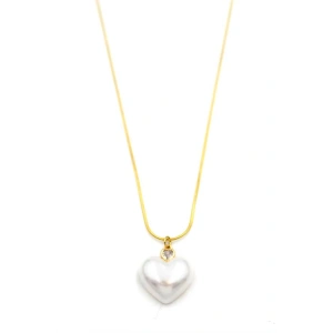 İnci Kalp Kolye - Altın