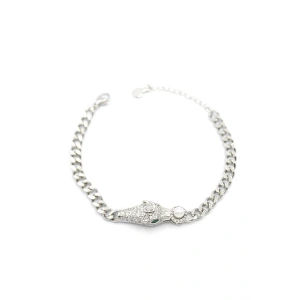 Zirkon Taşlı Leopar Bileklik - Gümüş