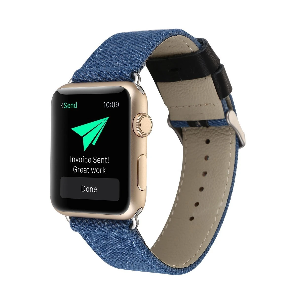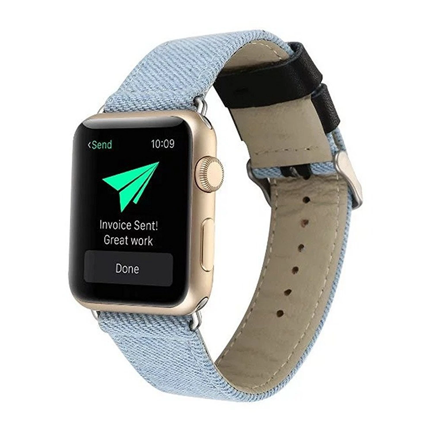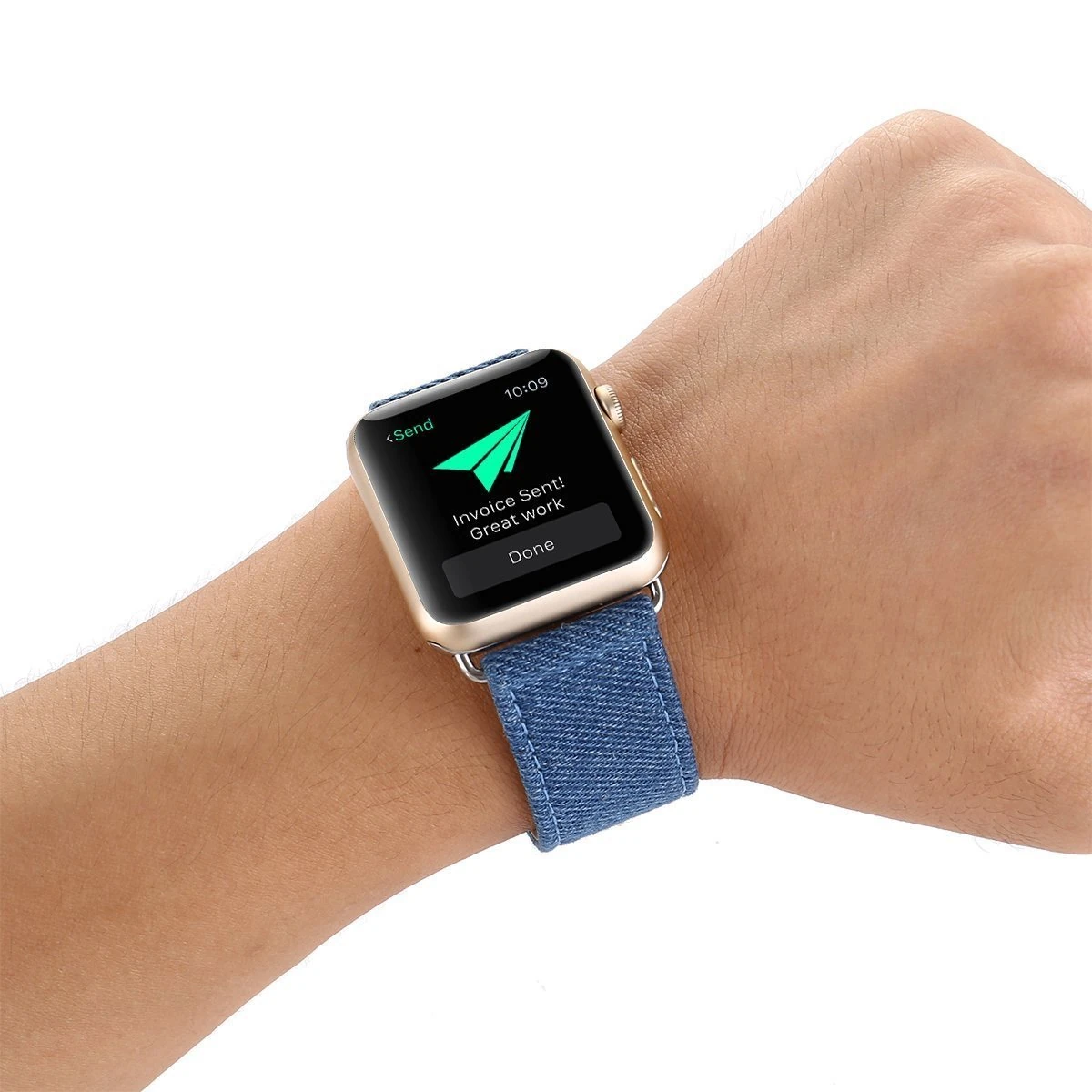 Ally Apple Watch 7-8 45mm 6-5-4 44mm Kayış Kordon Canvas Dokuma Blue Jean 3-2-1 42mm-(5775)