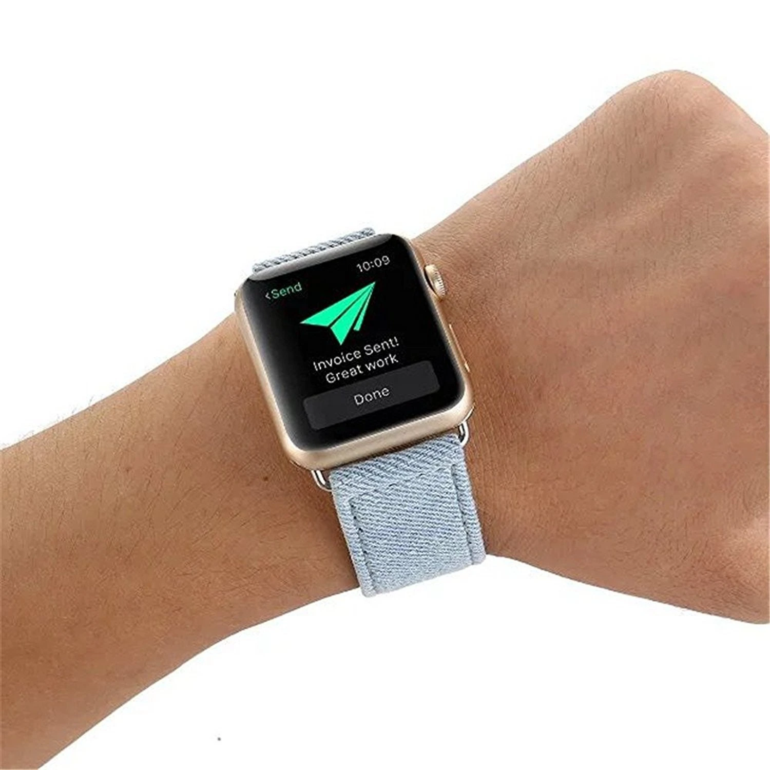 Ally Apple Watch 7 45mm 6-5-4 44mm Kayış Kordon Canvas Dokuma Blue Jean 3-2-1 42mm