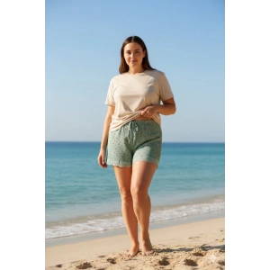 Bambu Fitilli Kadın Ev Şortu Bacak Dantel Detaylı Ev Giyim Yeşil