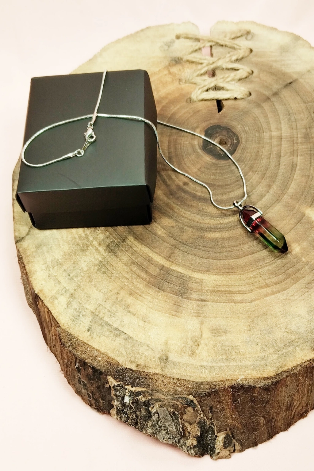 Anyolit 2 Doğal Taşı Zincirli El Yapımı Tasarımlı Kolye Uç: 3,5 Cm Zincir: 20 Cm Kutulu