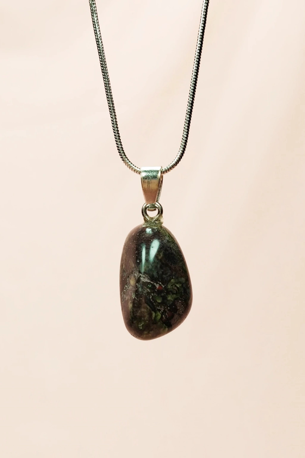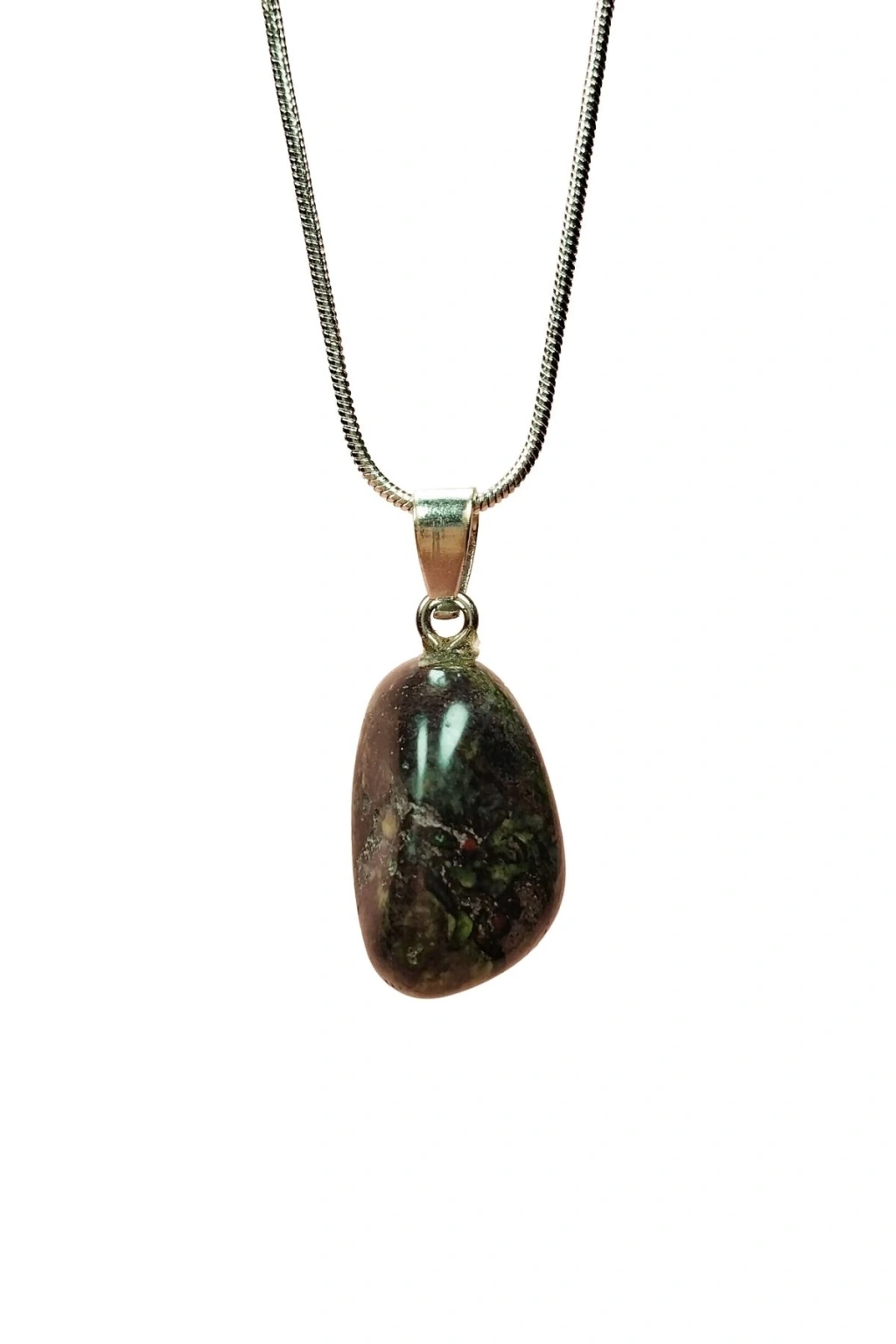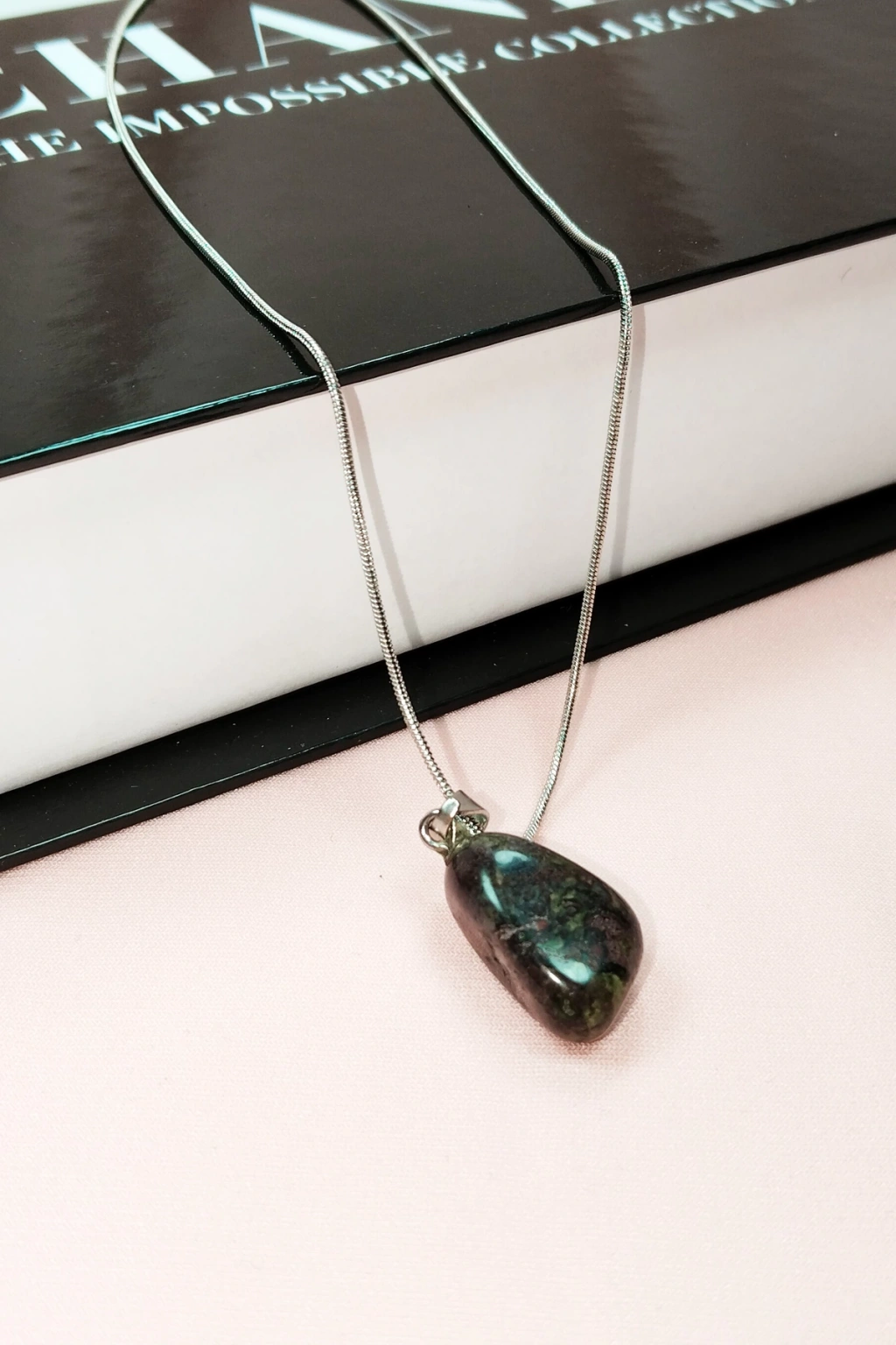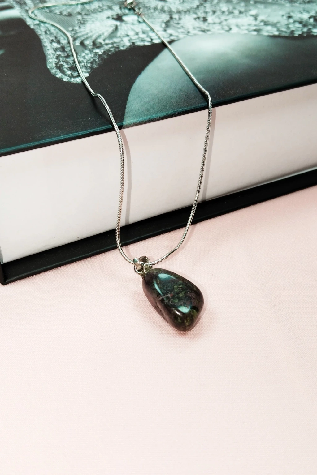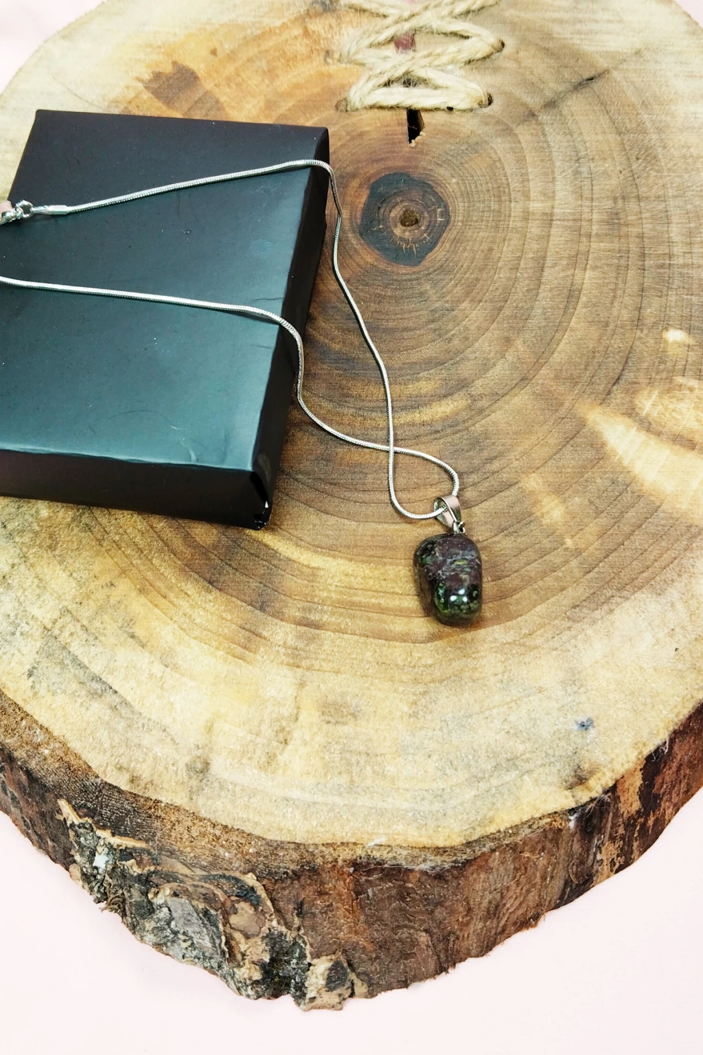 Anyolit Doğal Taşı Zincirli El Yapımı Kolye Uç: 2 Cm Zincir: 20 Cm Kutulu