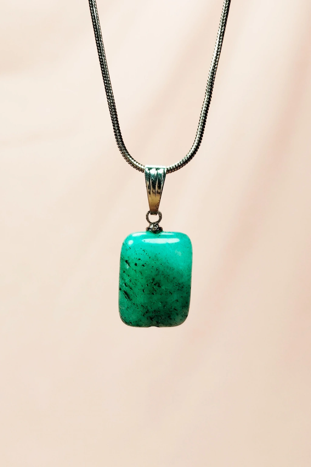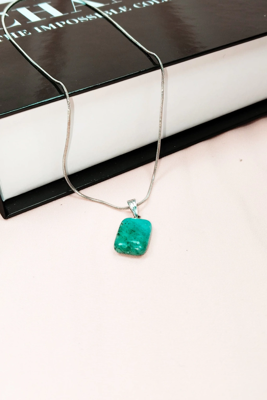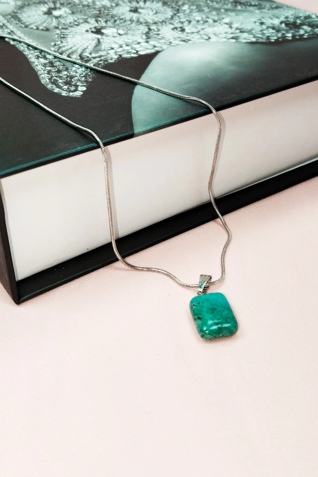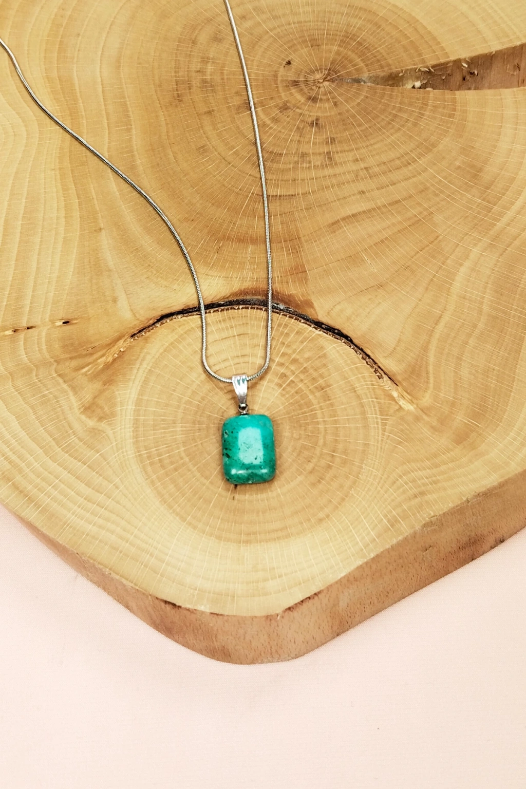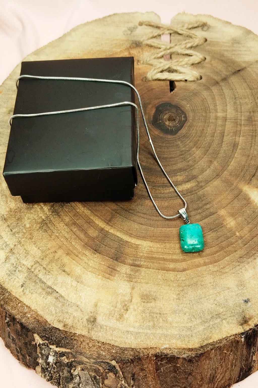 Apatit Doğal Taşı Zincirli El Yapımı Kolye Uç: 2 Cm Zincir: 20 Cm Kutulu