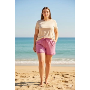 Bambu Fitilli Kadın Ev Şortu Bacak Dantel Detaylı Ev Giyim Taba