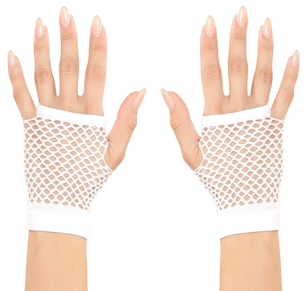 Karnaval ve cadılar bayramı kostümünüze bir dokunuş katacak kısa beyaz örgü eldivenler | Görünümünüzü bu 11 cm beyaz örgü eldivenlerle tamamlayın