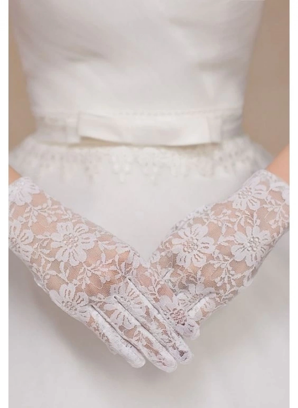 Beyaz Renk Kısa Dantelli Eldiven