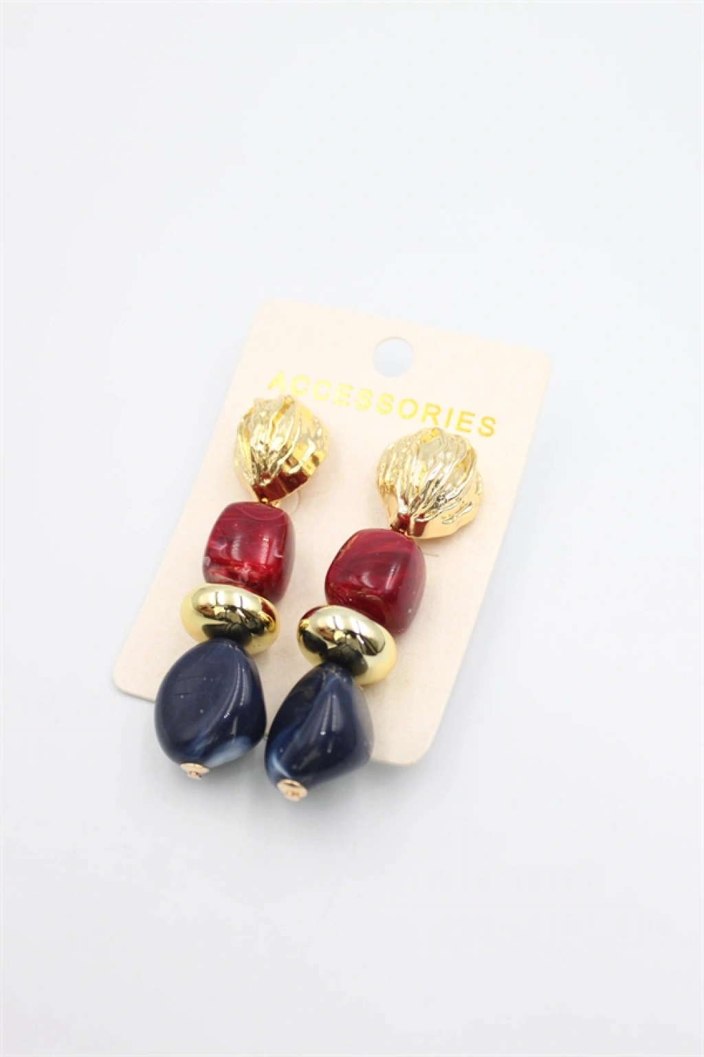 Boncuklu Küpe - Bordo