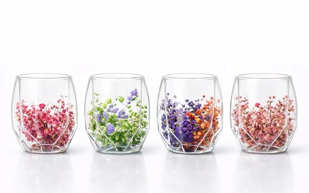 Çift Camlı Çiçekli Bardak Alk4471