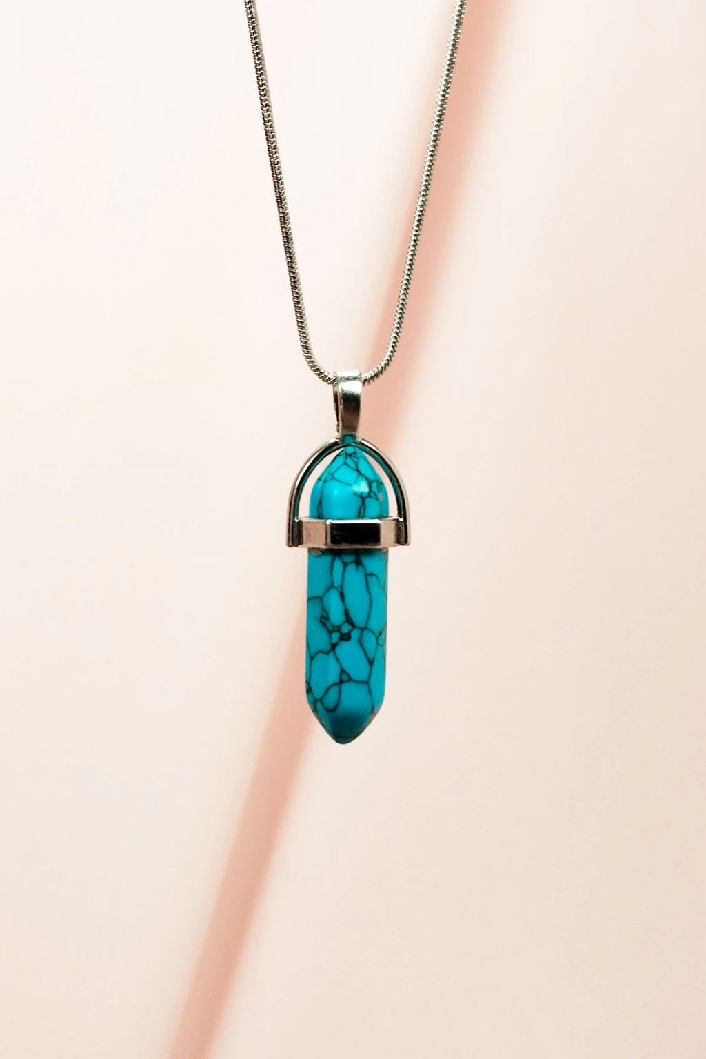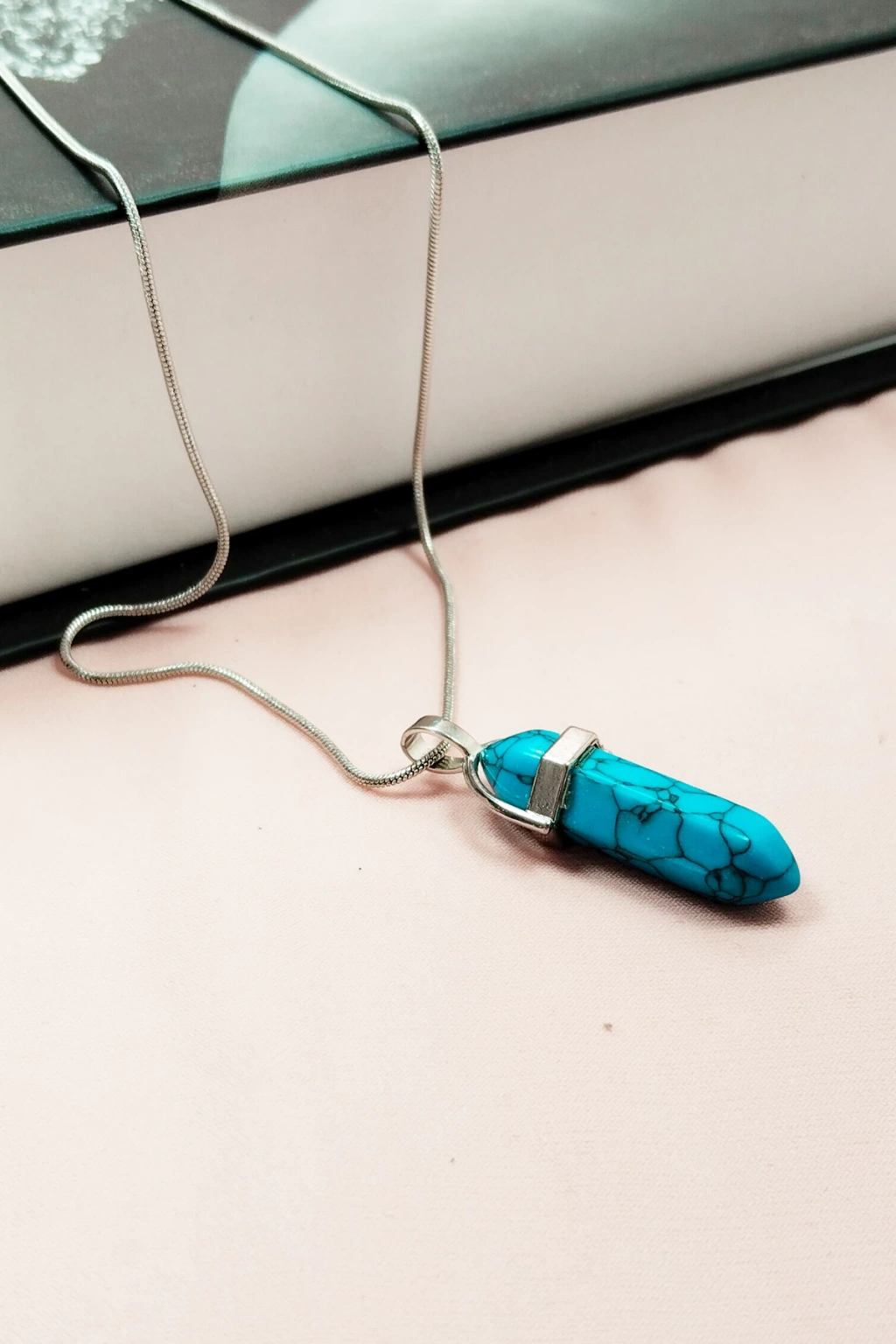 Firuze Doğal Taşı Zincirli El Yapımı Tasarımlı Kolye Uç: 3,5 Cm Zincir: 20 Cm Kutulu
