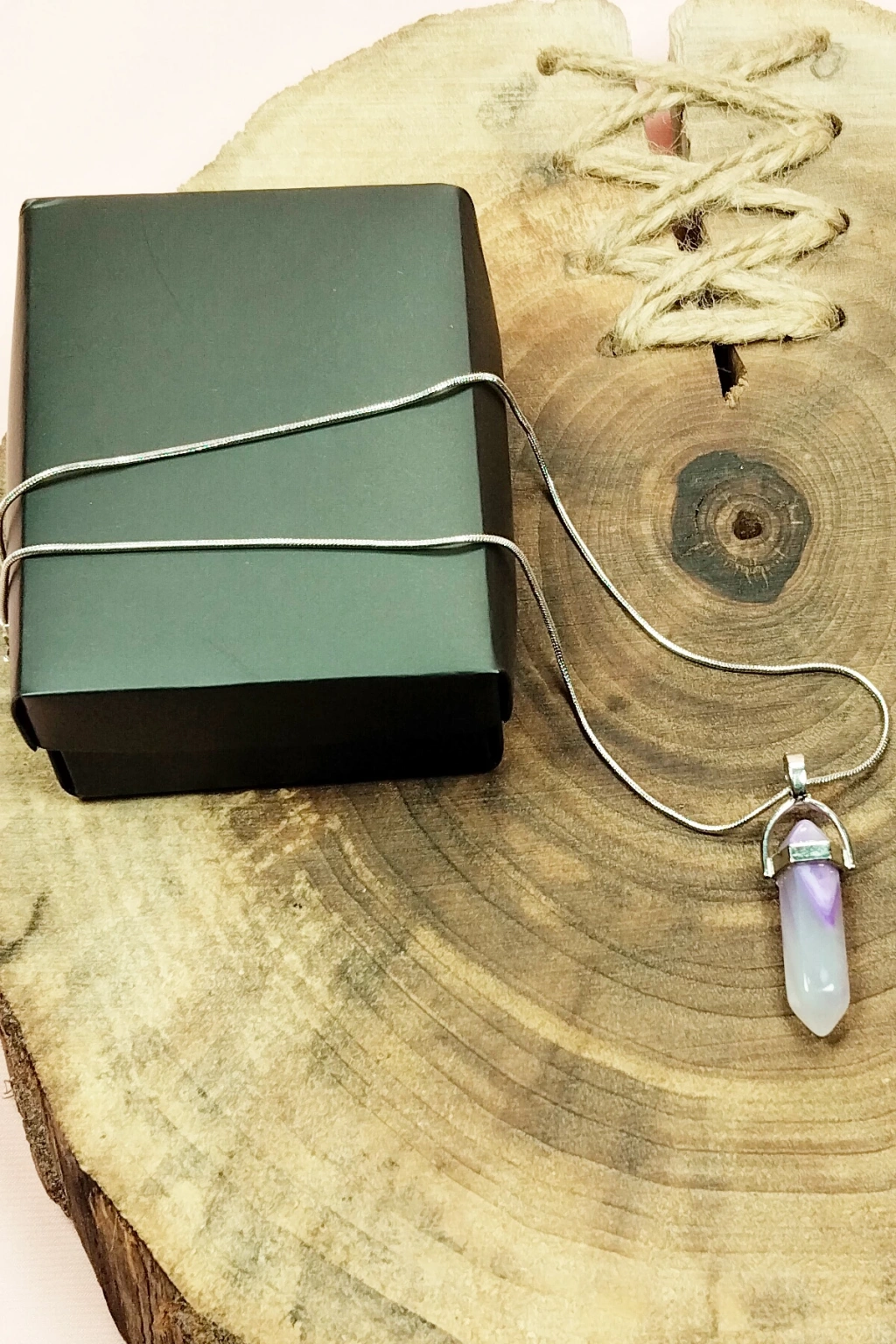 Florid Doğal Taşı Zincirli El Yapımı Tasarımlı Kolye Uç: 3,5 Cm Zincir: 20 Cm Kutulu