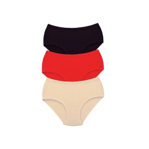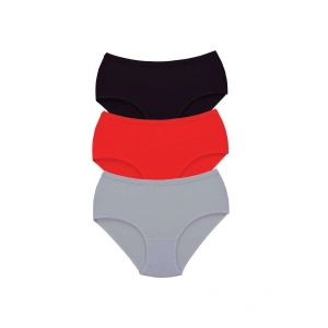 3 Adet Tutku Kadın Yüksek Bel Bato Kalın Lastik Külot Kırmızı