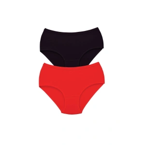2 Adet Tutku Kadın Yüksek Bel Bato Kalın Lastik Külot Kırmızı