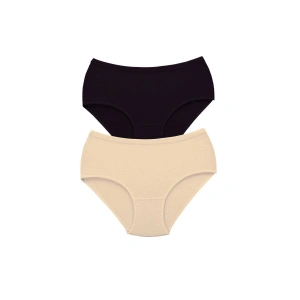 2 Adet Tutku Kadın Yüksek Bel Bato Kalın Lastik Külot Ten