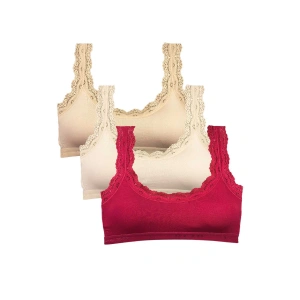 3 Adet Dantel Nakış İşlemeli Pedli Bambu Kadın Büstiyer Ten Krem Bordo