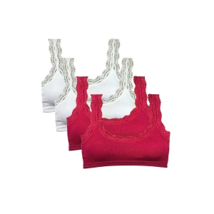 4 Adet Dantel Nakış İşlemeli Pedli Bambu Kadın Büstiyer Beyaz Bordo