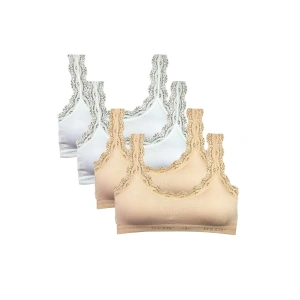 4 Adet Dantel Nakış İşlemeli Pedli Bambu Kadın Büstiyer Beyaz Krem