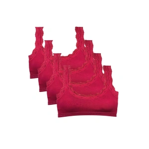 4 Adet Dantel Nakış İşlemeli Pedli Bambu Kadın Büstiyer Bordo