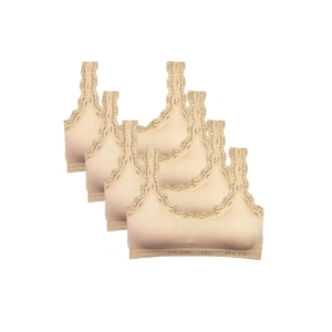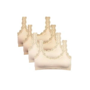 4 Adet Dantel Nakış İşlemeli Pedli Bambu Kadın Büstiyer Ten Krem