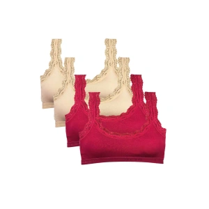 4 Adet Dantel Nakış İşlemeli Pedli Bambu Kadın Büstiyer Krem Bordo