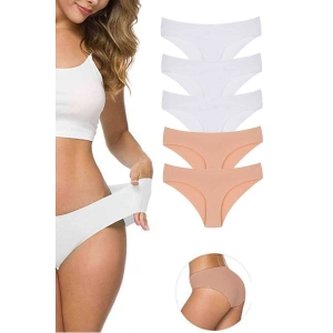 5 Adet Kadın Dikişsiz Lazer Kesim Esnek İz yapmayan Külot Beyaz