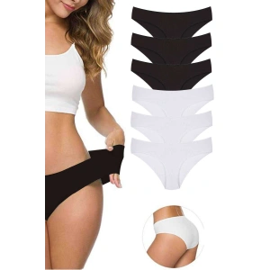 6 Adet Kadın Dikişsiz Lazer Kesim Esnek İz yapmayan Külot Beyaz