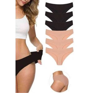 6 Adet Kadın Dikişsiz Lazer Kesim Esnek İz yapmayan Külot Ten