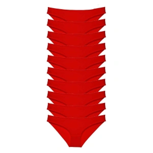 10 adet Süper Eko Set Likralı Kadın Slip Külot Kırmızı