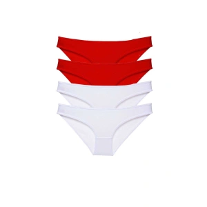 4 adet Süper Eko Set Likralı Kadın Slip Külot Kırmızı Beyaz