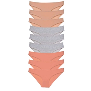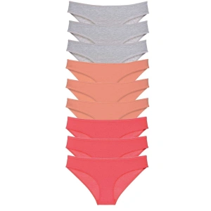 9 adet Süper Eko Set Likralı Kadın Slip Külot Gri Pudra Fuşya