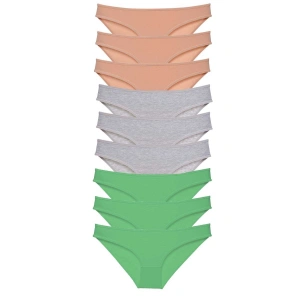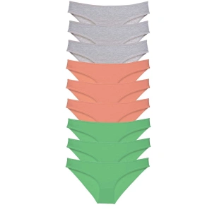 9 adet Süper Eko Set Likralı Kadın Slip Külot Ten Gri Yeşil