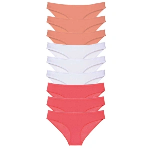 9 adet Süper Eko Set Likralı Kadın Slip Külot Pudra Beyaz Fuşya