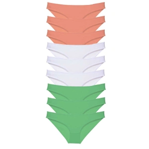 9 adet Süper Eko Set Likralı Kadın Slip Külot Pudra Beyaz Yeşil