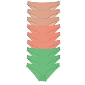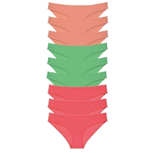 9 adet Süper Eko Set Likralı Kadın Slip Külot Pudra Yeşil Fuşya