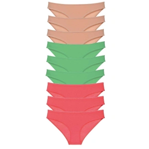 9 adet Süper Eko Set Likralı Kadın Slip Külot Ten Yeşil Fuşya