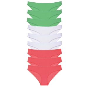 9 adet Süper Eko Set Likralı Kadın Slip Külot Yeşil Beyaz Fuşya