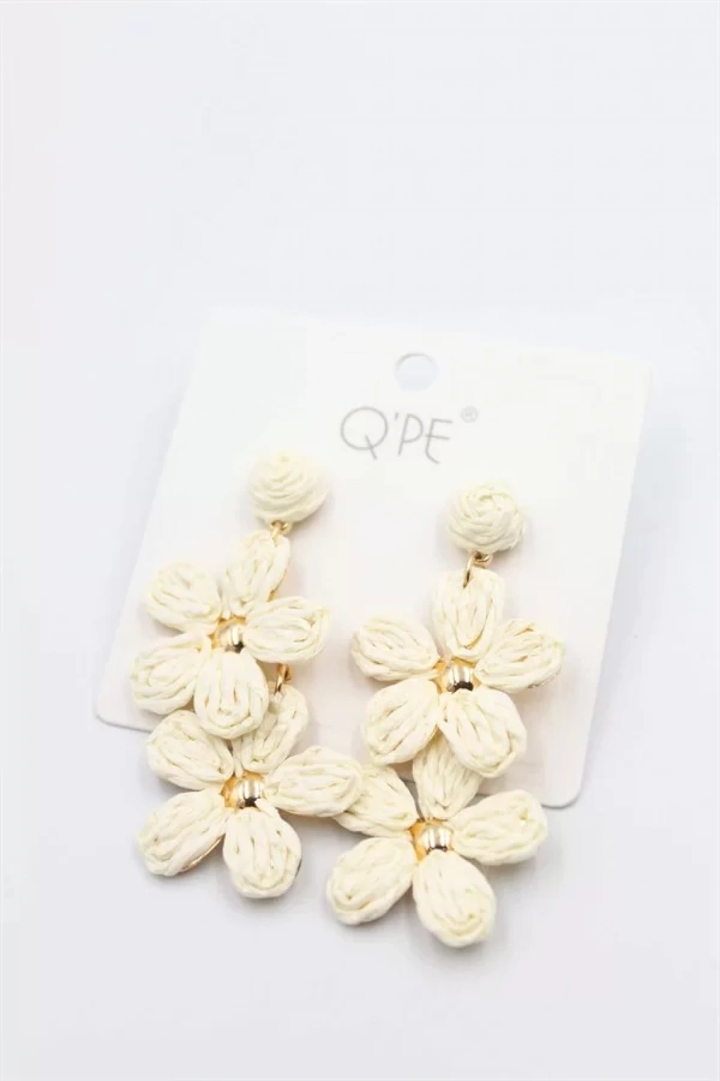 Hasır Çiçek Küpe - Krem
