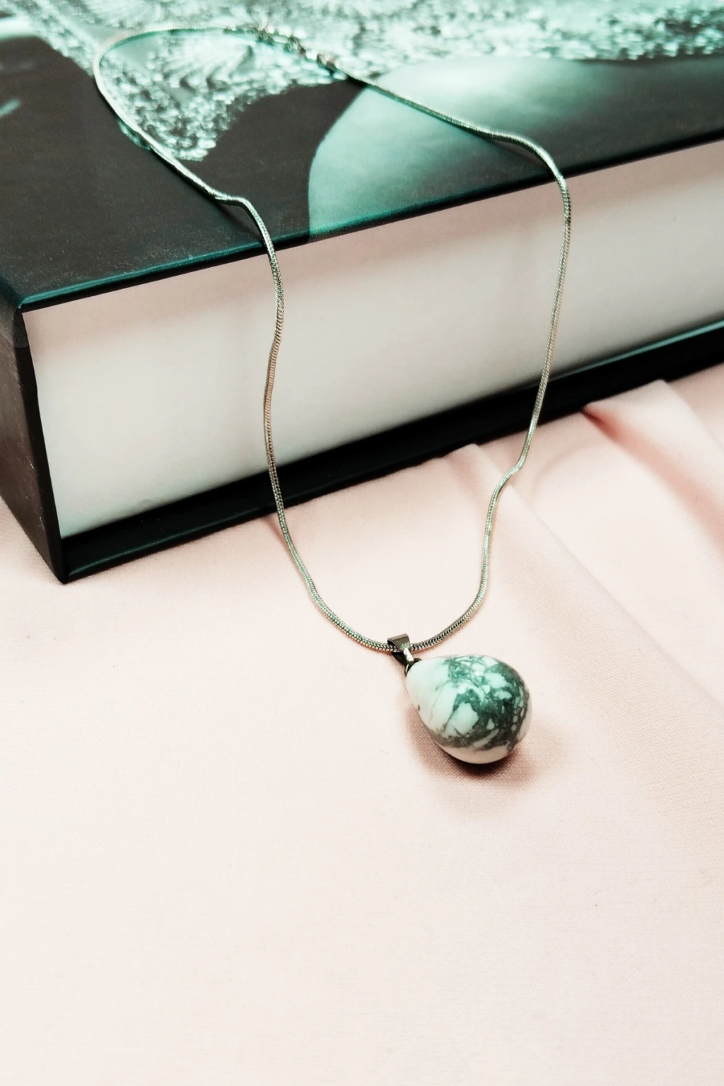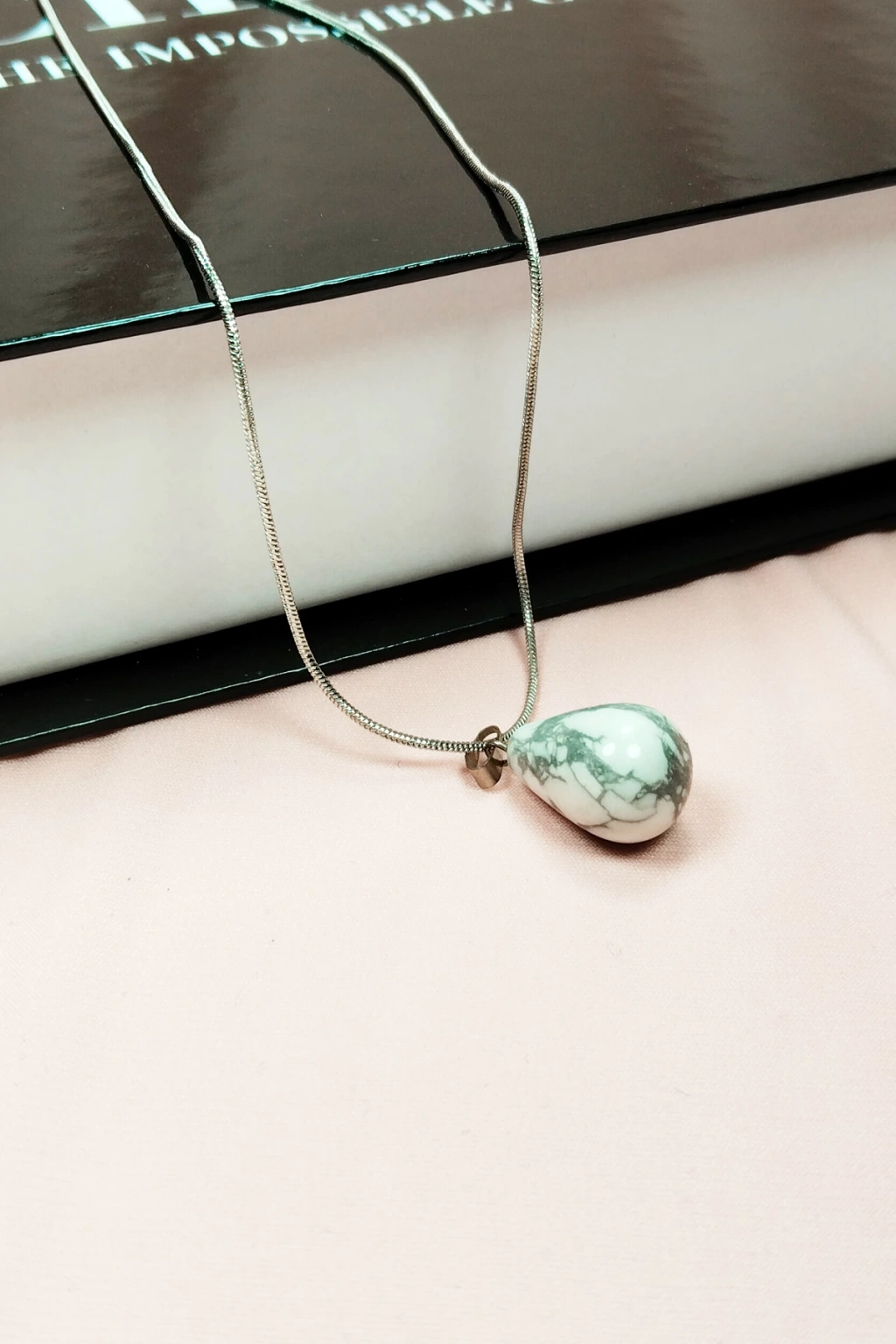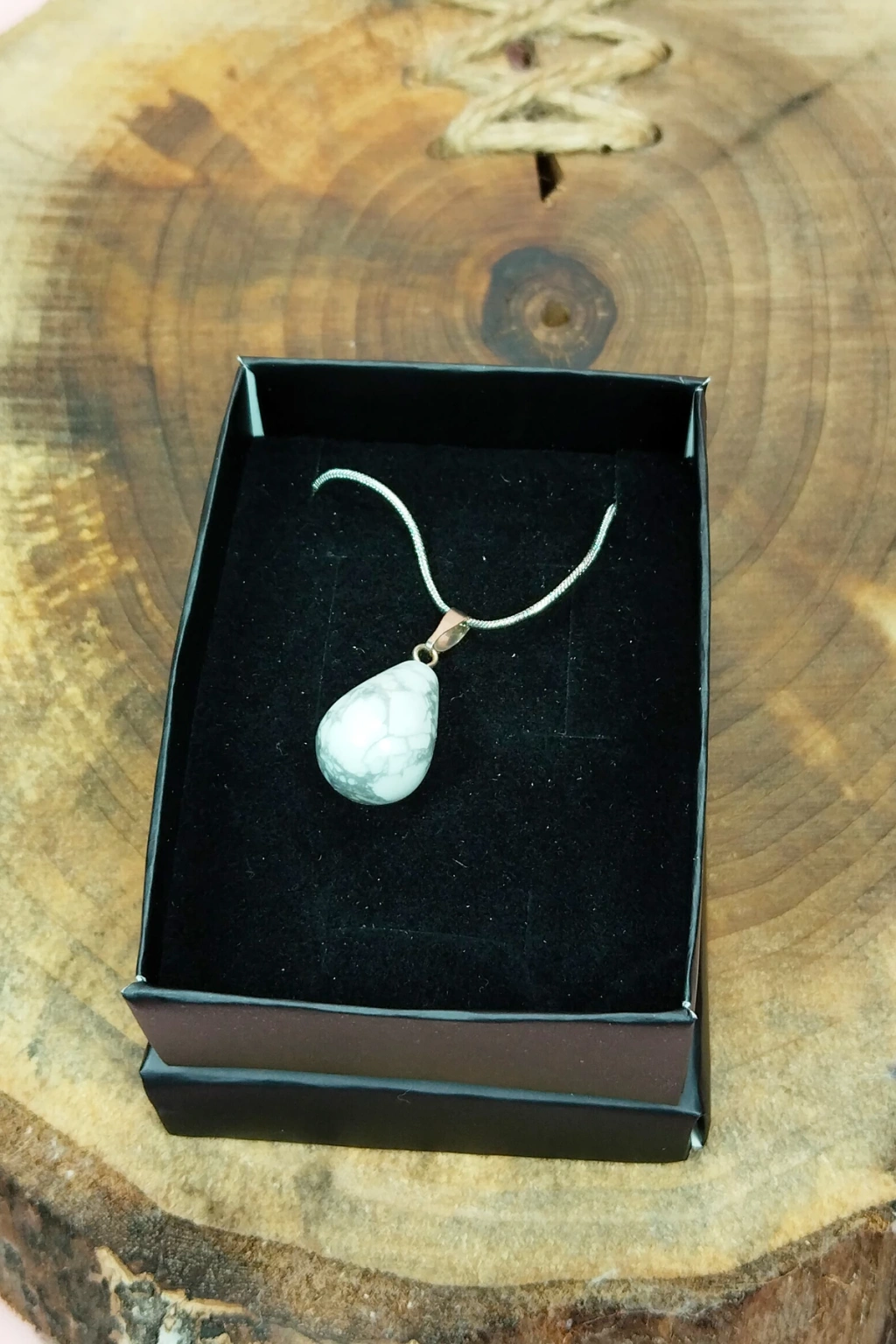 Havlit Doğal Taşı Zincirli El Yapımı Kolye Uç: 2 cm Zincir: 20 cm Kutulu