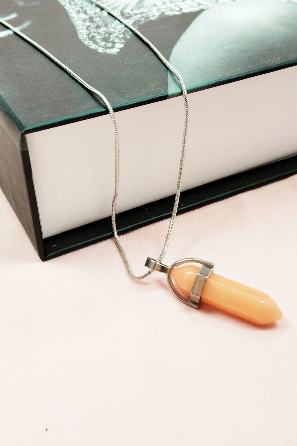 Himalaya Doğal Taşı Zincirli El Yapımı Tasarımlı Kolye Uç: 3,5 Cm Zincir: 20 Cm Kutulu