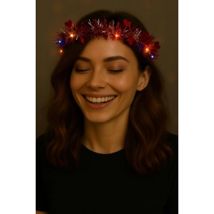 Kalp Püsküllü Gece Parıltısı 3 Modlu Led39li Işıklı Taç Kırmızı Renk