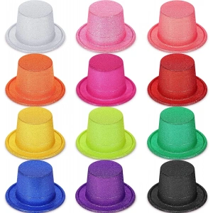 Karışık Renk Simli Silindir Parti Şapkaları (12 Adet)