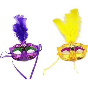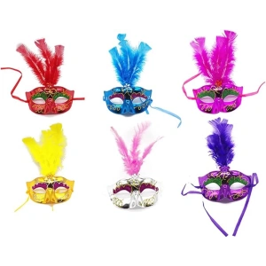 Renkli Tüylü Venedik Parti Maskesi Karışık Renk 12 Adet